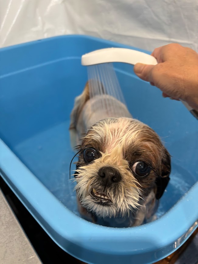 トリミングはマイクロナノバブルと炭酸泉を導入し、全てのシャンプーコース、シャンプーカットコースにマイクロナノバブル&炭酸泉のかけ流しが無料でついております。